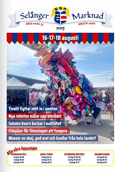 Snart är det dags för Selånger marknad! Vi erbjuder något för alla besökare: traditionell marknad, ett högklassigt tivoli och kvalitetsmat. Läs mer om årets marknad i marknadstidningen (klicka på bilden nedan). OBS att det råkade bli fel datum på bilden nedan. Det ska vara 15-17 augusti.